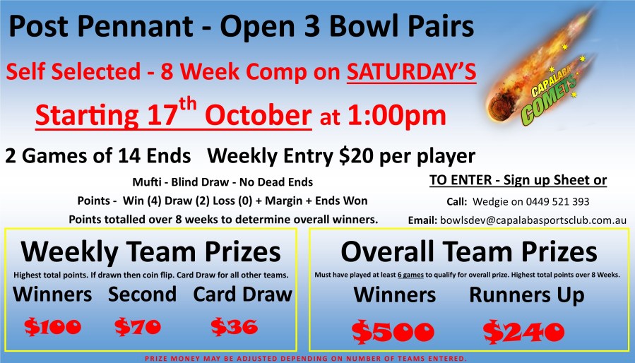 Post Pennant 3 bowl pairs