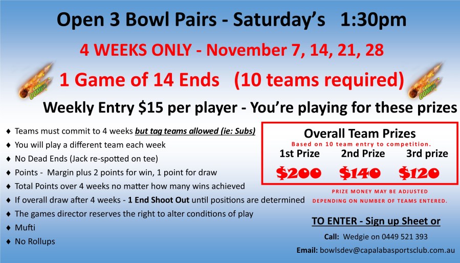Saturday 3 bowl pairs